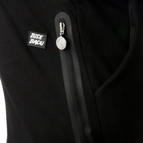 - Applied logo, Waist with elastic cord, Waistband with drawstring, Stitched logo, media pocket, Side pockets, Decorative stitching