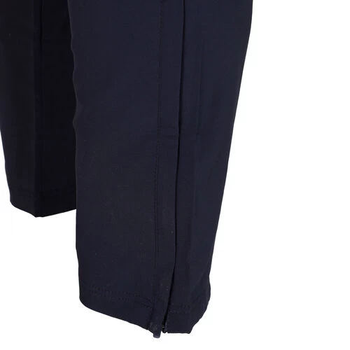 - Wide waistband, Ribbed waistband, Waist with elastic cord, Full two-way zip, Elastic cuff, Elastic waist, Stitched logo, High zip (on high collar), Chin protection at the collar, Zipper on the trouser leg, Side pockets, Hidden zip, Decorative stitching