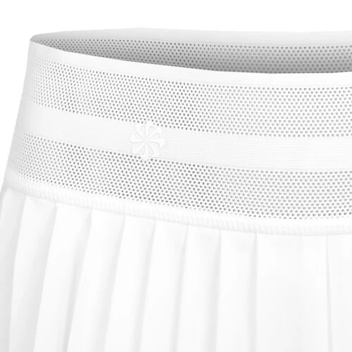 With the Nike Dri-Fit Court Slam Skirt. This high-cut tennis skirt wows with a loose pleated design that adapts to your movements and an elasticated mesh waistband that sits above the hips and won’t pinch or constrict you. As the name suggests, this skirt also features Dri-FIT technology to keep you dry and comfortable. The practical inner shorts not only offer additional support, but you can also store a few extra balls in them. All in all, the Nike Dri-Fit Skirt is a companion you don’t want to be without.
